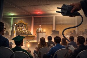 Erro do reitor. Erro de quem decidiu que a melhor forma de protestar contra um desvio era produzir um desastre maior. Entre o excesso e o vandalismo simbólico, os formandos ficaram, no sentido elétrico e no simbólico, no escuro. A colação de grau, que deveria ser o instante em que a instituição se curva diante do esforço do aluno, transformou-se numa arena de vaidades, ressentimentos e gestos teatrais de gosto duvidoso.