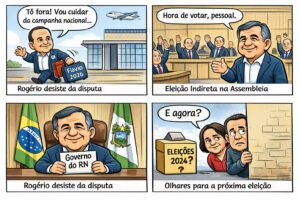 A política potiguar anda se movendo como aqueles jogos de salão em que as peças mudam de lugar quando o público ainda tenta entender as regras. Ontem (21), Rogério Marinho anunciou que sai de cena na disputa pelo governo do Rio Grande do Norte. Não sai derrotado, nem abatido; sai estrategicamente deslocado. Abandona o tabuleiro local para subir ao palco nacional, para o qual foi convocado para coordenar a candidatura de Flávio Bolsonaro ao Palácio do Planalto. É um gesto que diz menos sobre generosidade partidária e mais sobre cálculo frio, daqueles que não costumam falhar quando feitos com régua, compasso e memória histórica.